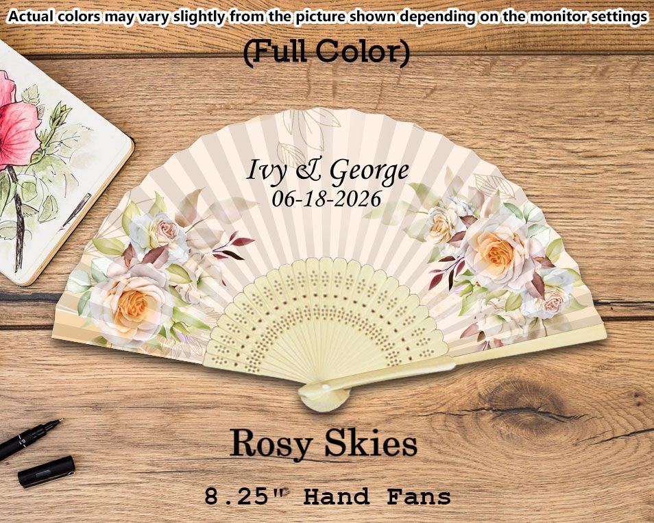 Personalized Silk Fans with Full-Color Designs Specs: