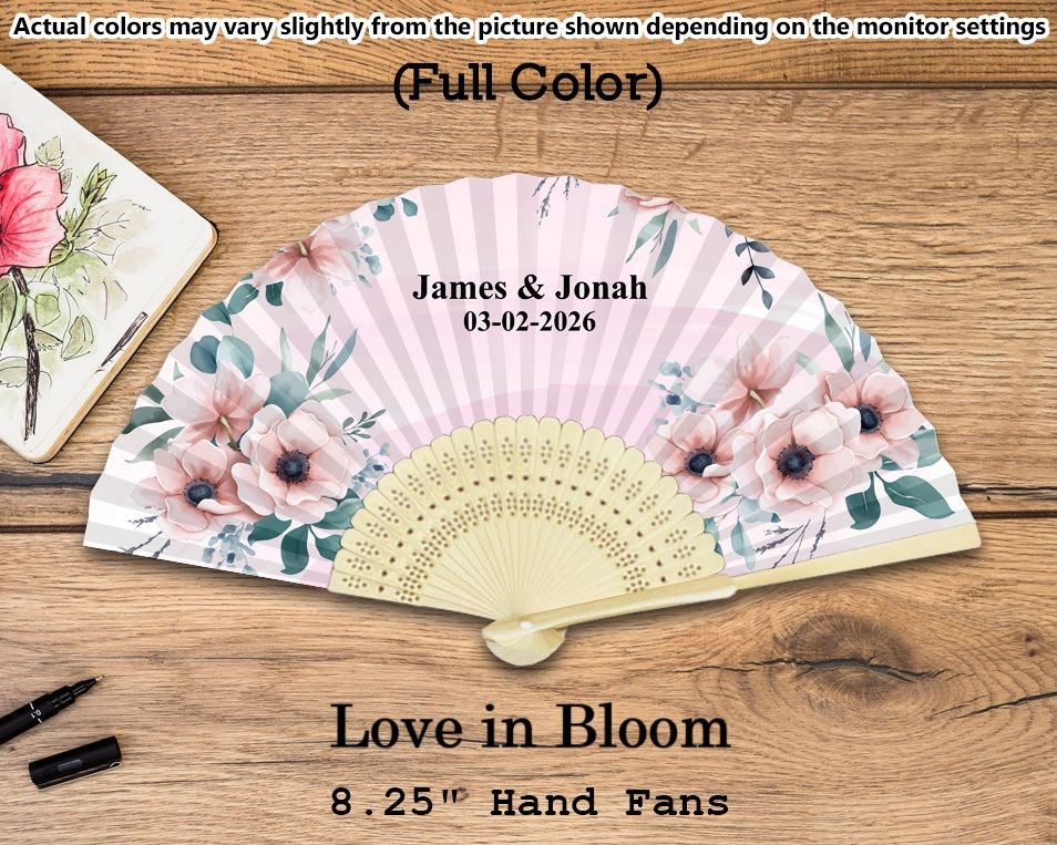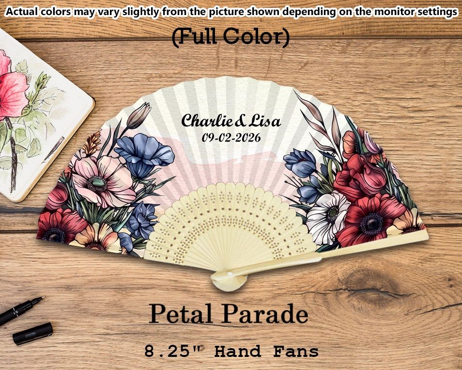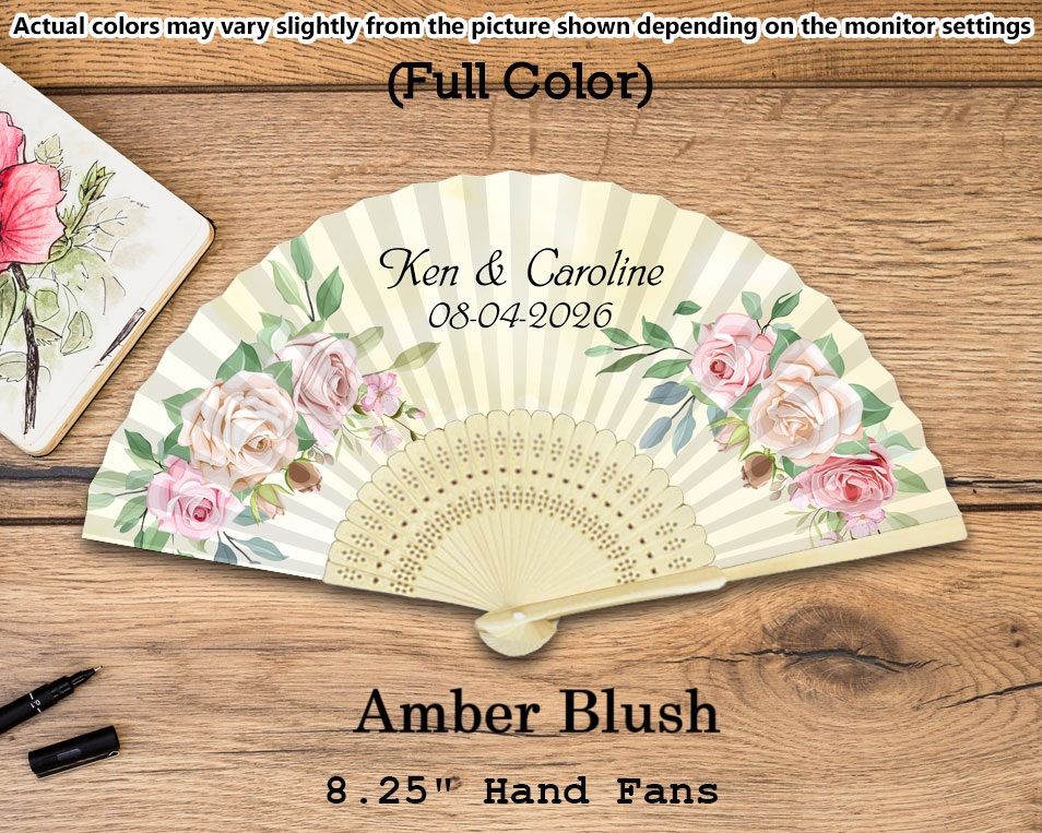 - You can also add an optional print on the handle of the hand fan, max 40 characters (additional $0.75 per piece)