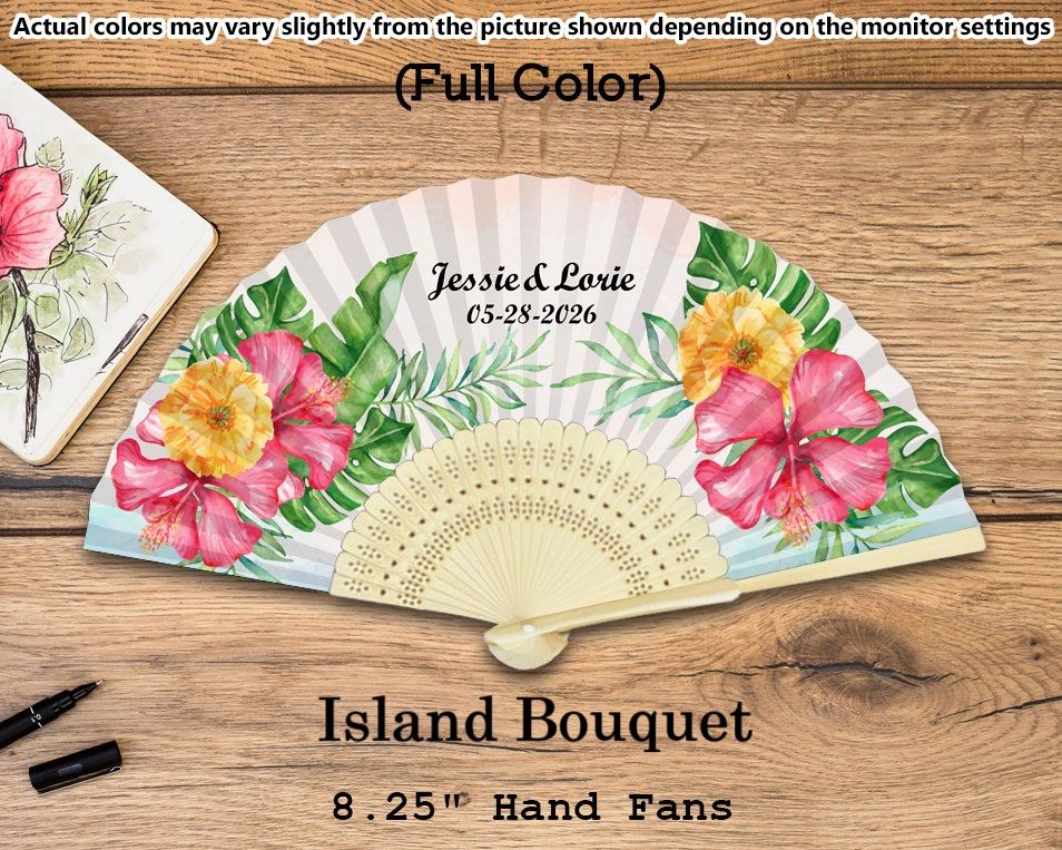 - Personalize these Destination Wedding Silk Fan Favors with the full-color print of your logo, photo, or finished artwork